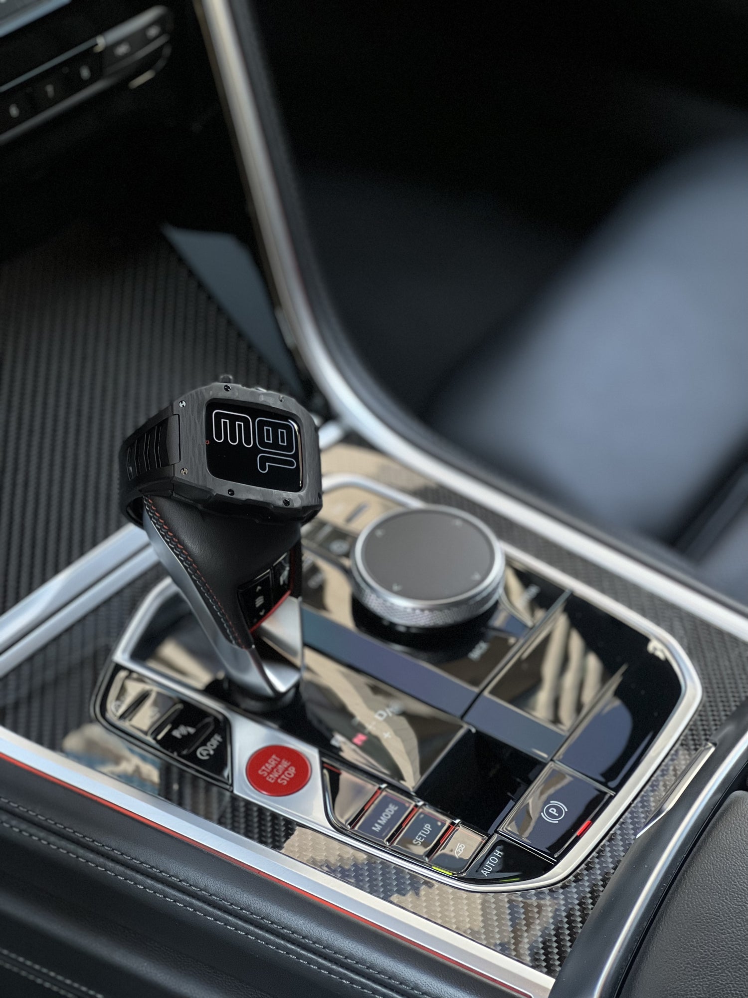 RM Carbon Apple Watch Case with White Rubber Strap