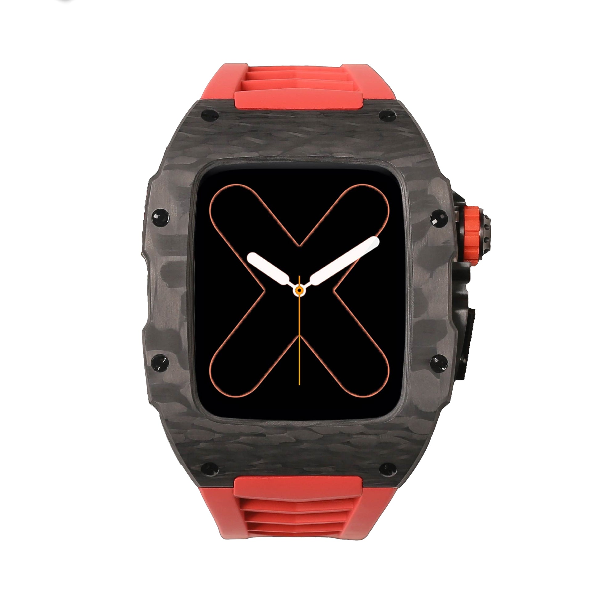 RM Carbon Apple Watch Case with Red Rubber Strap