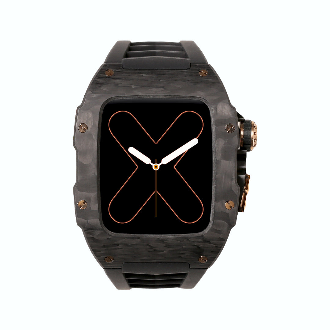 RM Carbon And Rose Gold Apple Watch Case With Black Rubber Strap