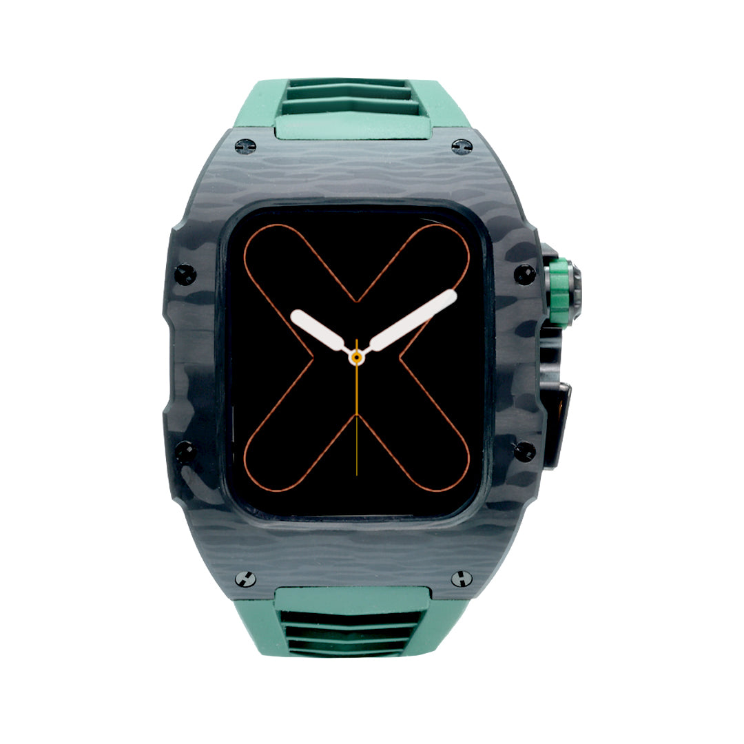 RM Carbon Apple Watch Case with Green Rubber Strap