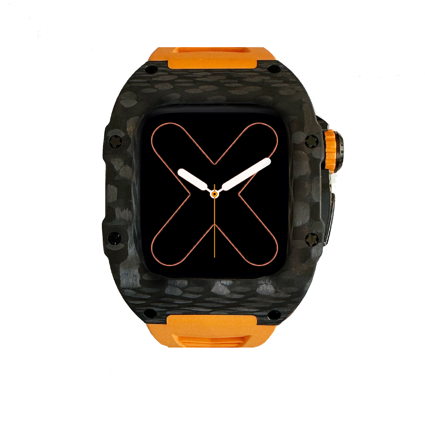 RM Carbon Apple Watch Case with Orange Rubber Strap