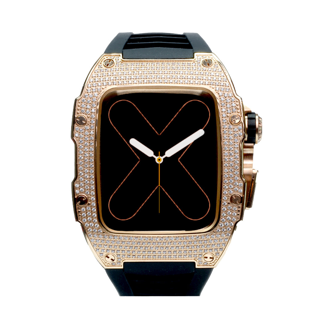 RM Rose Gold and Full Swarovski with Black Rubber Strap