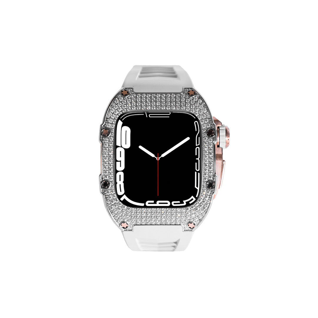 RM Swarovski with two tones rose gold/stainless and white rubber strap