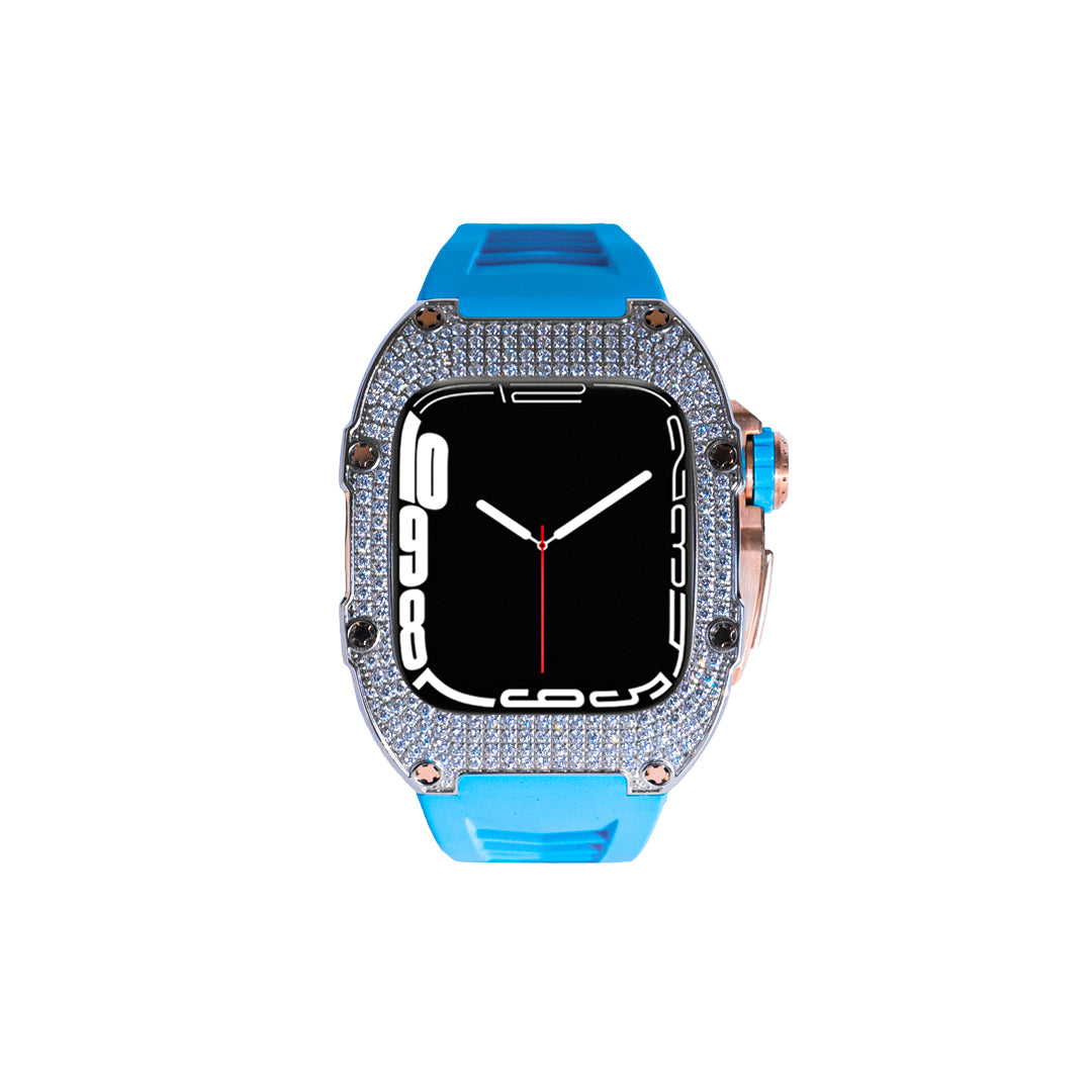 RM Swarovski with two tones rose gold/stainless with blue rubber strap