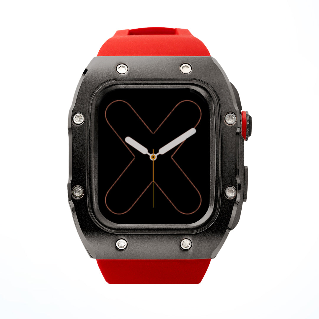RM Black & Stainless Steel Apple Watch Case with Red Rubber Strap