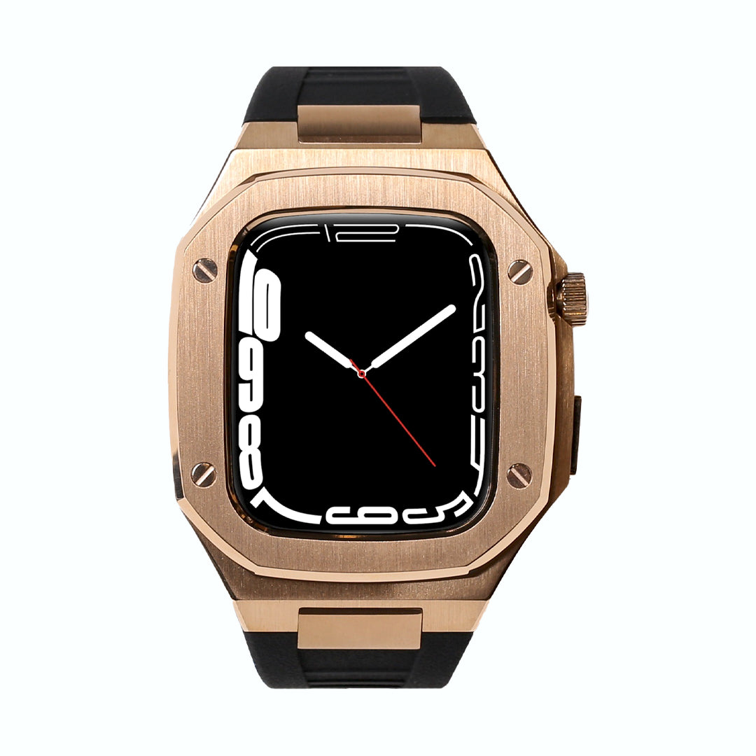 Rose Gold Apple Watch Case with Black Silicone Strap