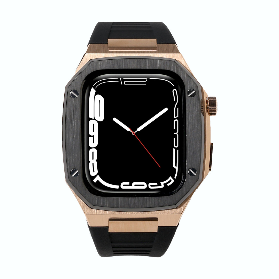 Rose Gold & Black Bezel Apple Watch Case with Black Silicone Strap