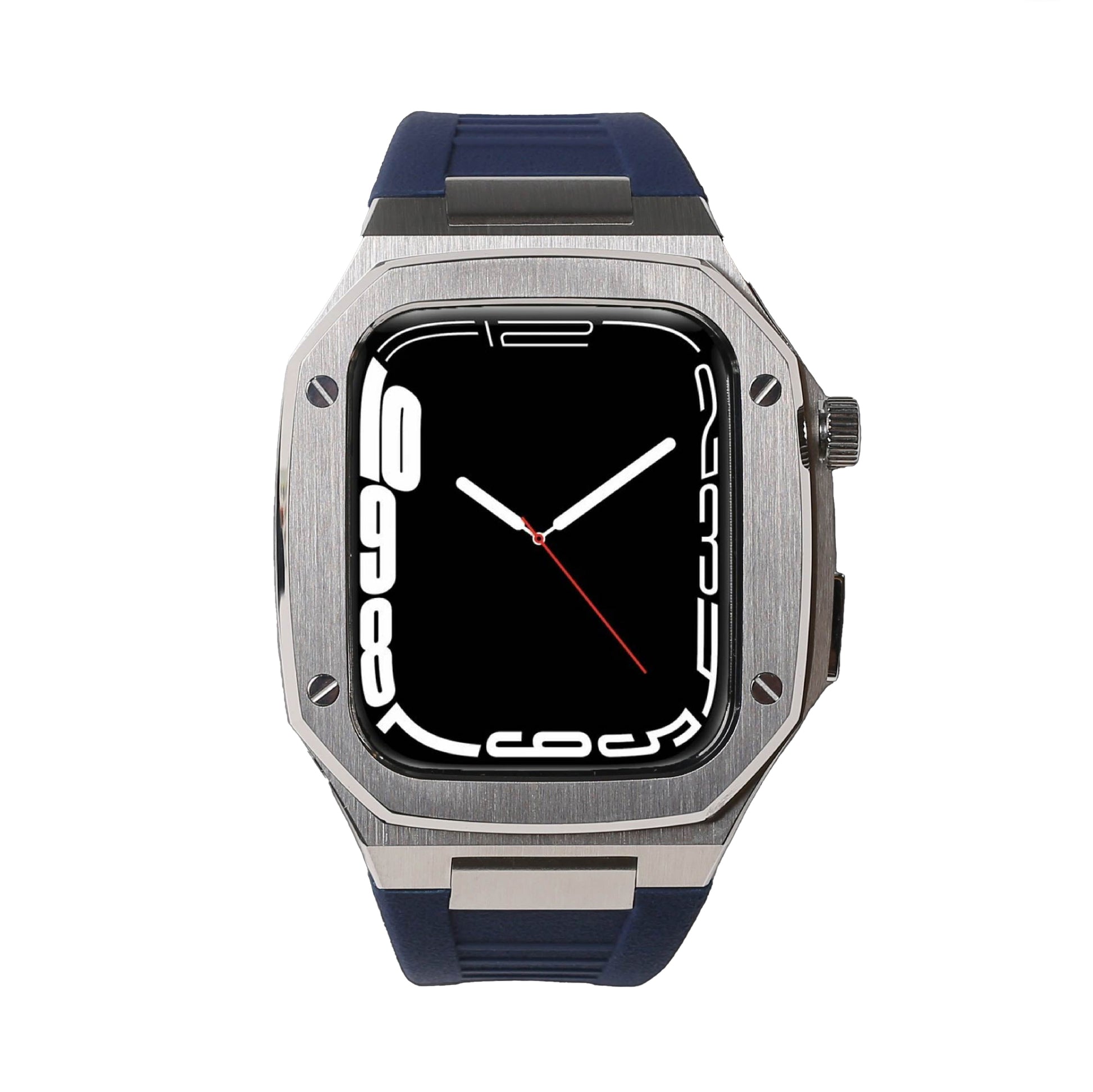 Stainless Steel Apple Watch Case With Navy Blue Strap