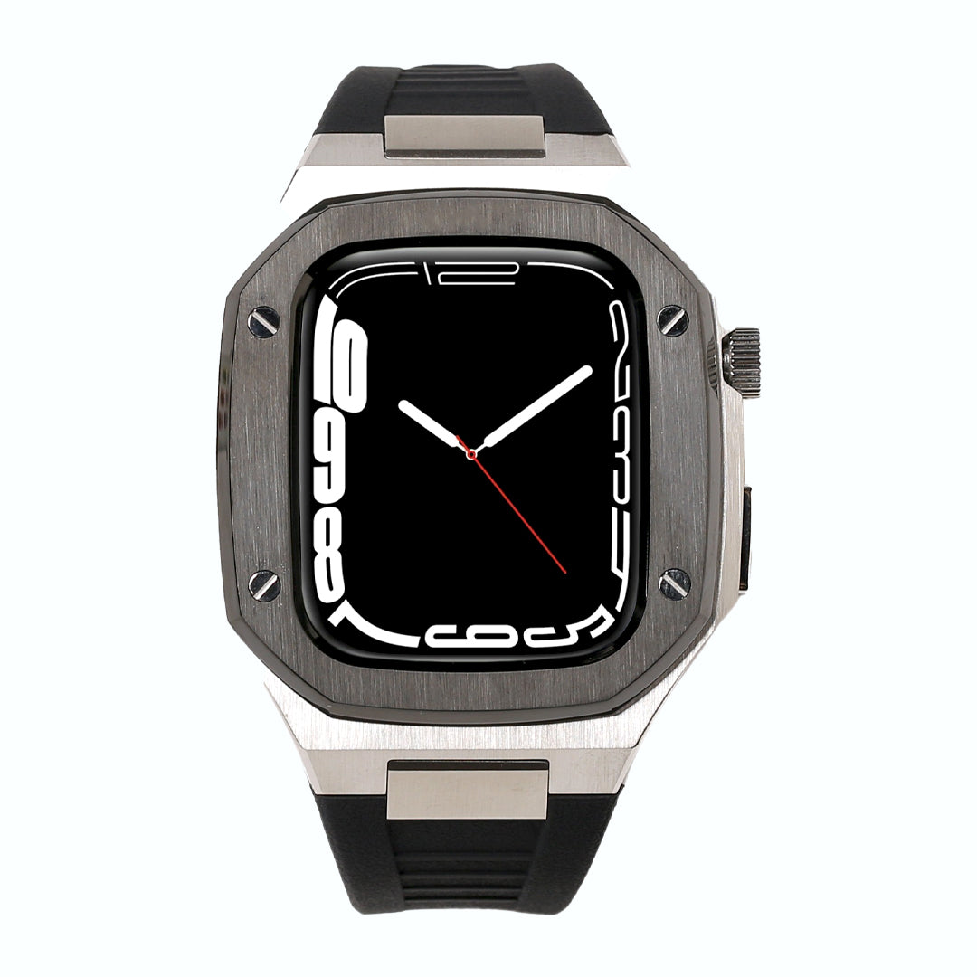 Stainless Steel & Black Bezel Apple Watch Case with Black Rubber Strap